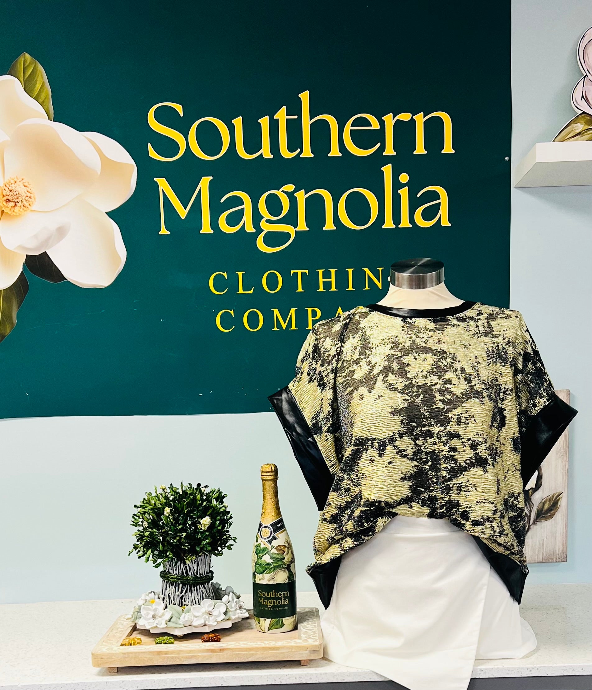 Gold-Black Abstract Metallic Pattern Drop Shoulder Wide Top